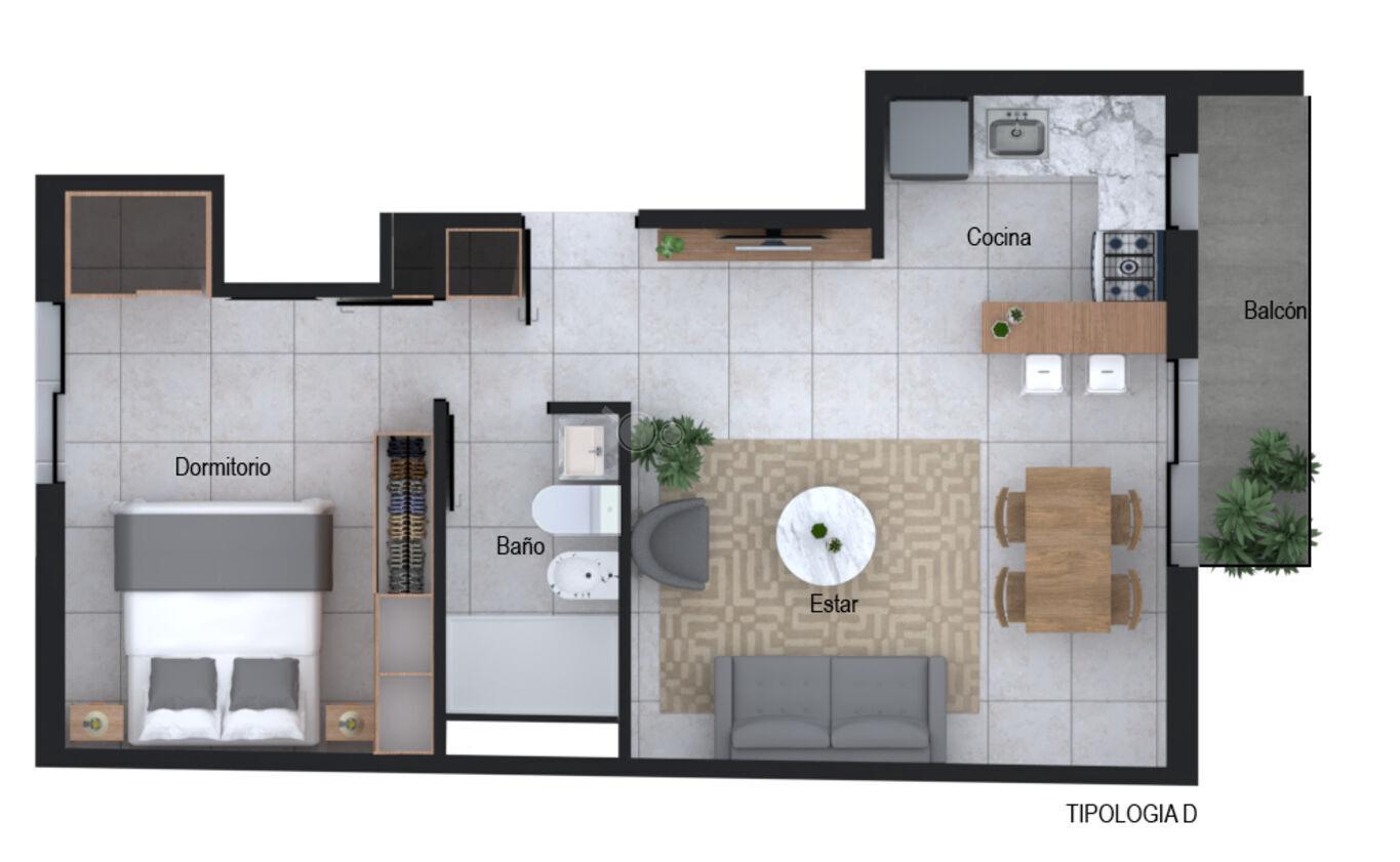 Apartamento de 1 dormitorio desde: USD 126.500 gasto de ocupación incluido.