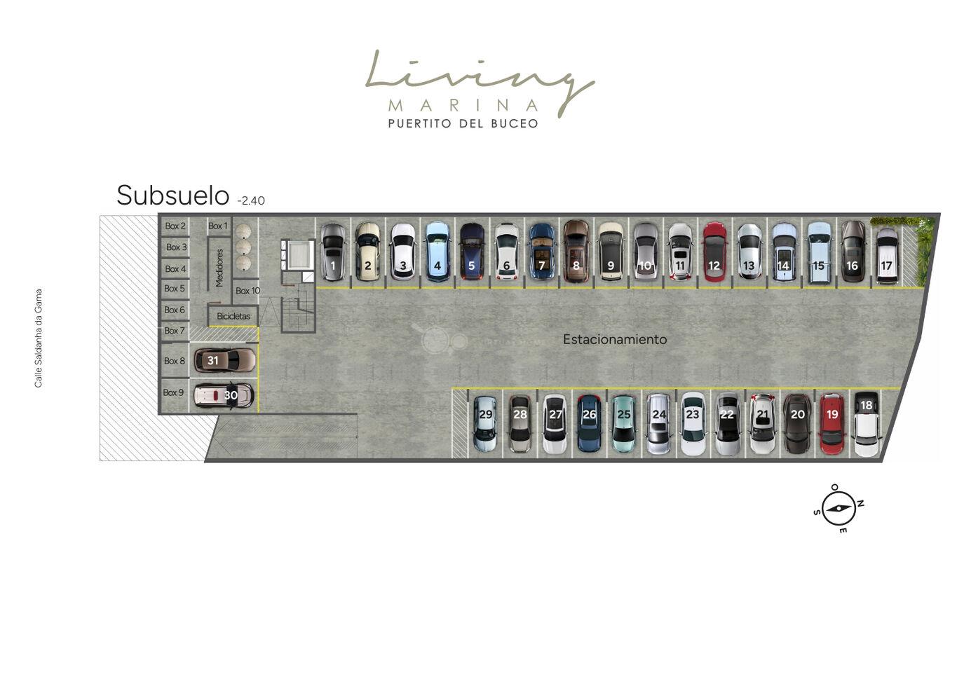 En el subsuelo tendrá estacionamiento para 31 vehículos, 11 boxes y bicicletero.