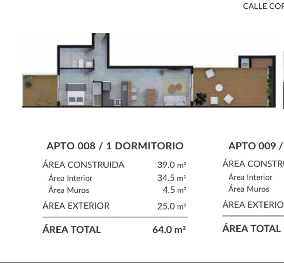 Metraje: 39 m2 interiores propios + 25 m2 de Patio individual.