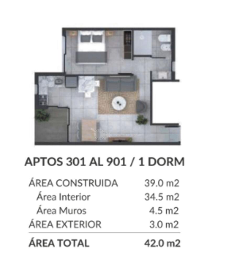 Su metraje es de 40 m2 interiores + 4 m2 de balcón.