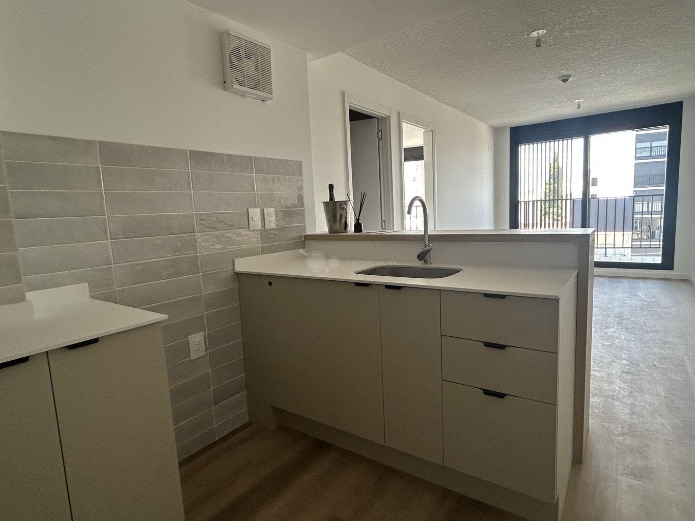 Cuenta con una moderna cocina, con muebles bajo y sobre mesada, living comedor y terraza al frente.